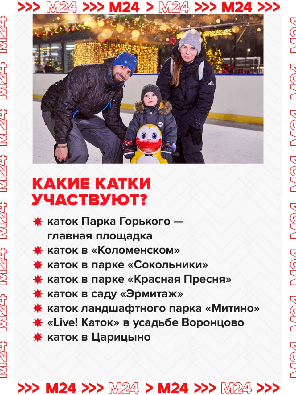 Завтра вечером вход на большинство ледовых площадок будет бесплатным, а гостей ждёт насыщенная программа с мастер-классами, музыкой, конкурсами и самым романтичным катанием.