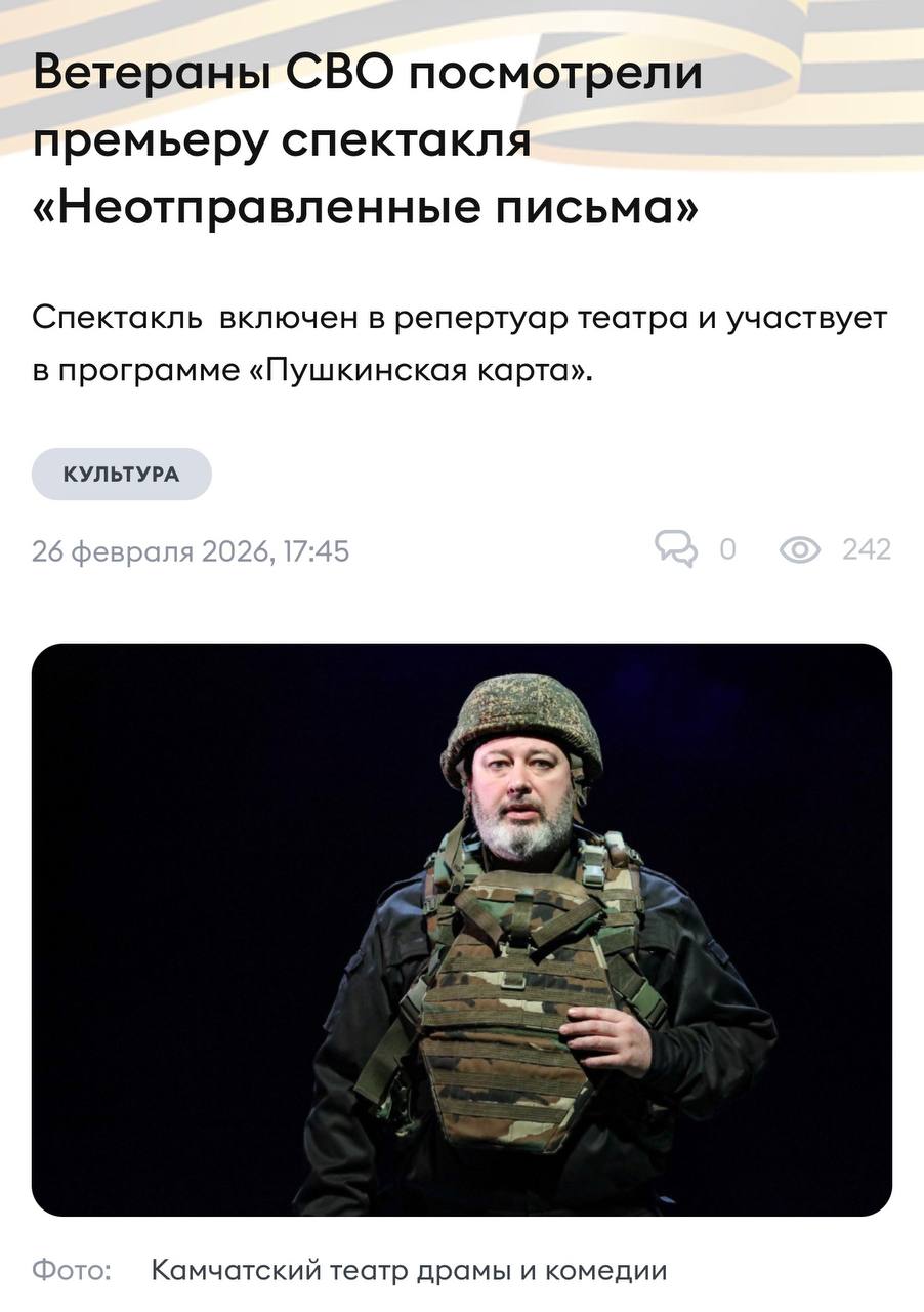 На Камчатке состоялась премьера спектакля о СВО по моему роману «Неотправленные письма»!