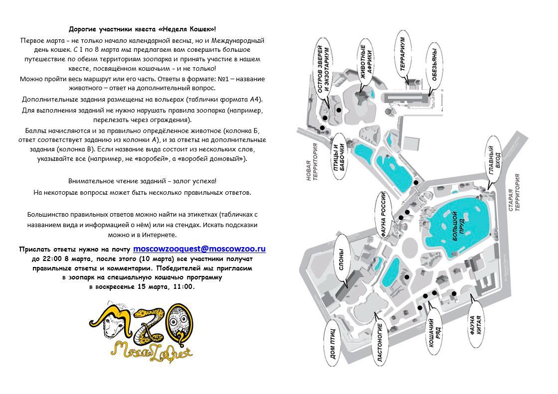 Нужно найти специальные таблички у вольеров, выполнить задания и отправить ответы на почту moscowzooquest@moscowzoo.ru до 20:00 8 марта. Итоги подведут 10 марта.