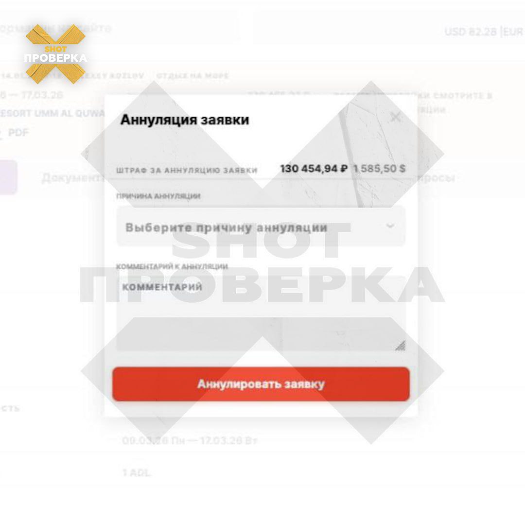 Как рассказал SHOT ПРОВЕРКЕ москвич Павел, он должен был вылететь из Москвы в ОАЭ 8 марта — тур оформил ещё в конце января через фирму Sunmar. Однако теперь лететь туда боится — мужчина самостоятельно отменил поездку. Теперь туроператор выставил ему штраф — больше 130 тысяч рублей, почти 100% от стоимости поездки.