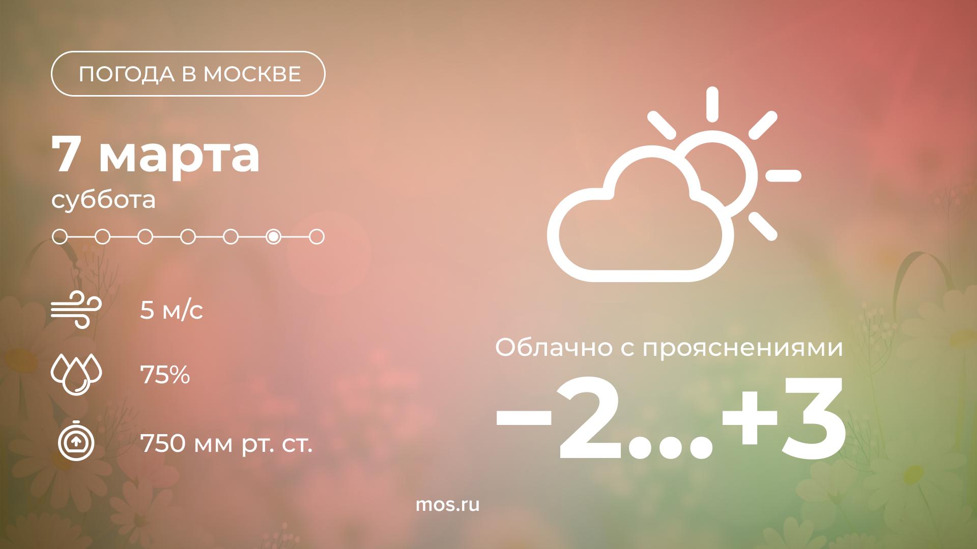 Сегодня в Москве будет облачно с прояснениями. Столбики термометров днем покажут от 2 до +3 °С.