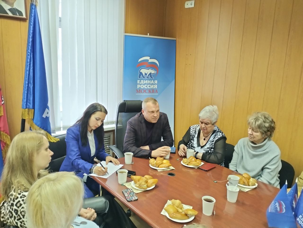 «Тёплый и откровенный разговор с участницами «Женского движения» запада Москвы в рамках проекта «Полезные встречи». Давно со всеми знакомы, за пять лет многое сделано совместно на благо жителей Западного округа столицы. Проблем остаётся немало: загруженность групп в некоторых детских садах района Кунцево, вопросы по группам продлённого дня для многодетных, получил обращение из Крылатского о проблемах при изменении маршрутов общественного транспорта, говорили о парковках в Можайском районе. Наметили конкретные действия. Запросы в органы власти направлю уже во вторник. В понедельник – у всех выходной», - поделился Евгений Попов.