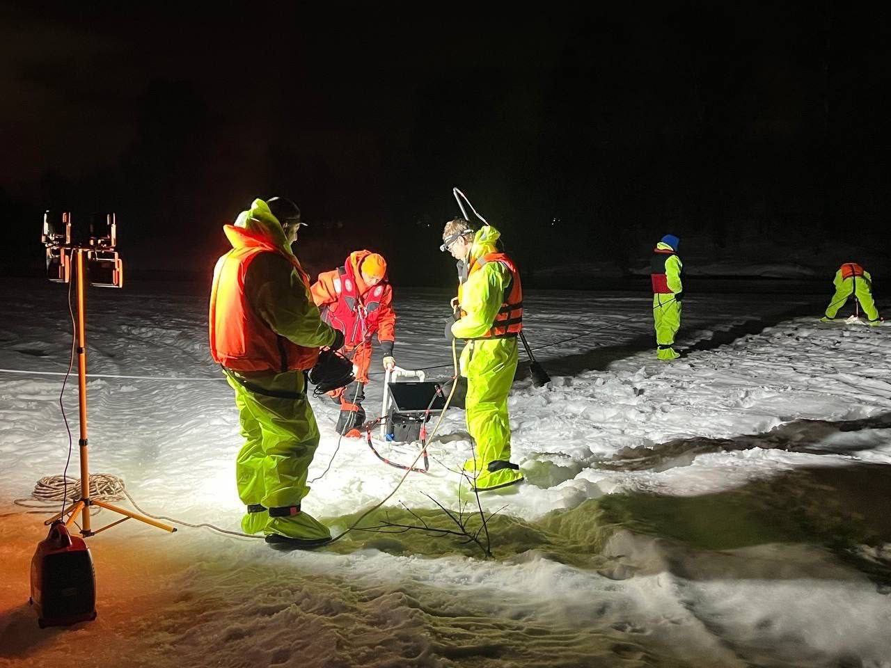 За сутки обследовано 600 квадратных метров речного дна, пять километров береговой линии. Пешие группы патрулируют район на снегоходах.