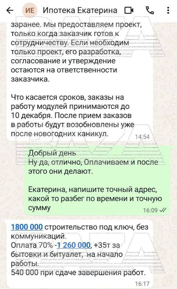 Иван познакомился с брокером Екатериной Косянчук через общего знакомого, которому очень доверял. Потому буквально сразу он согласился на предложение женщины построить одноэтажный жилой дом на участке в Подмосковье. Тем более стоимость работ Екатерина оценила в три раза ниже рыночной. В ноябре прошлого года Иван передал ей 1,5 млн рублей наличными.