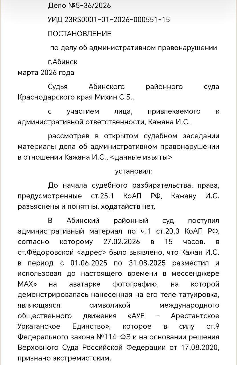Житель Краснодарского края поставил вместо фото восьмиконечную звезду — символ экстремистского запрещённого движения АУЕ.