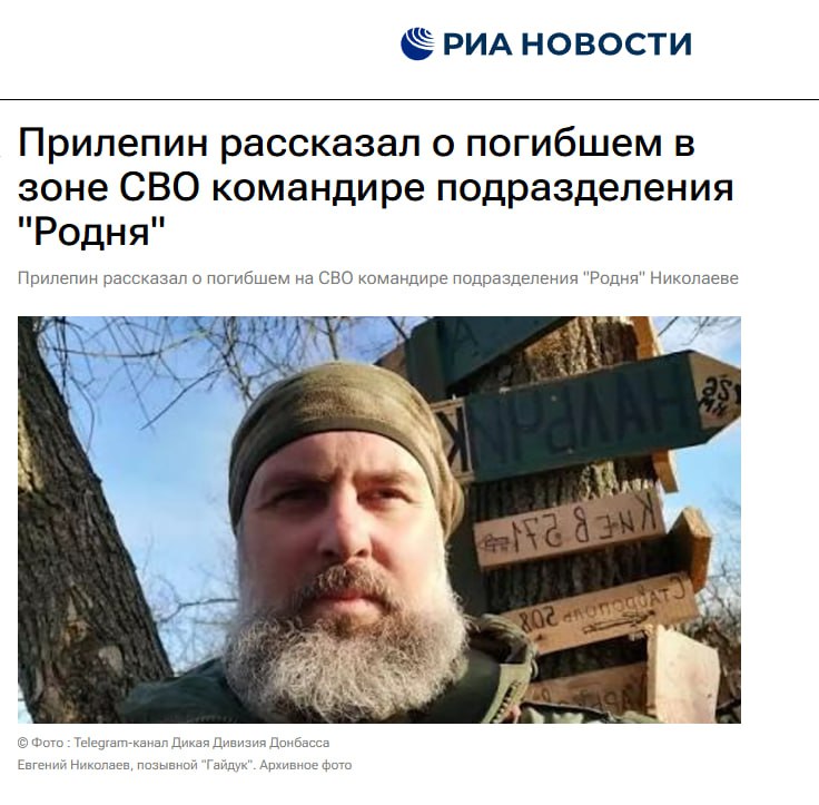 РИА Новости: Прилепин рассказал о погибшем в зоне СВО командире подразделения «Родня»