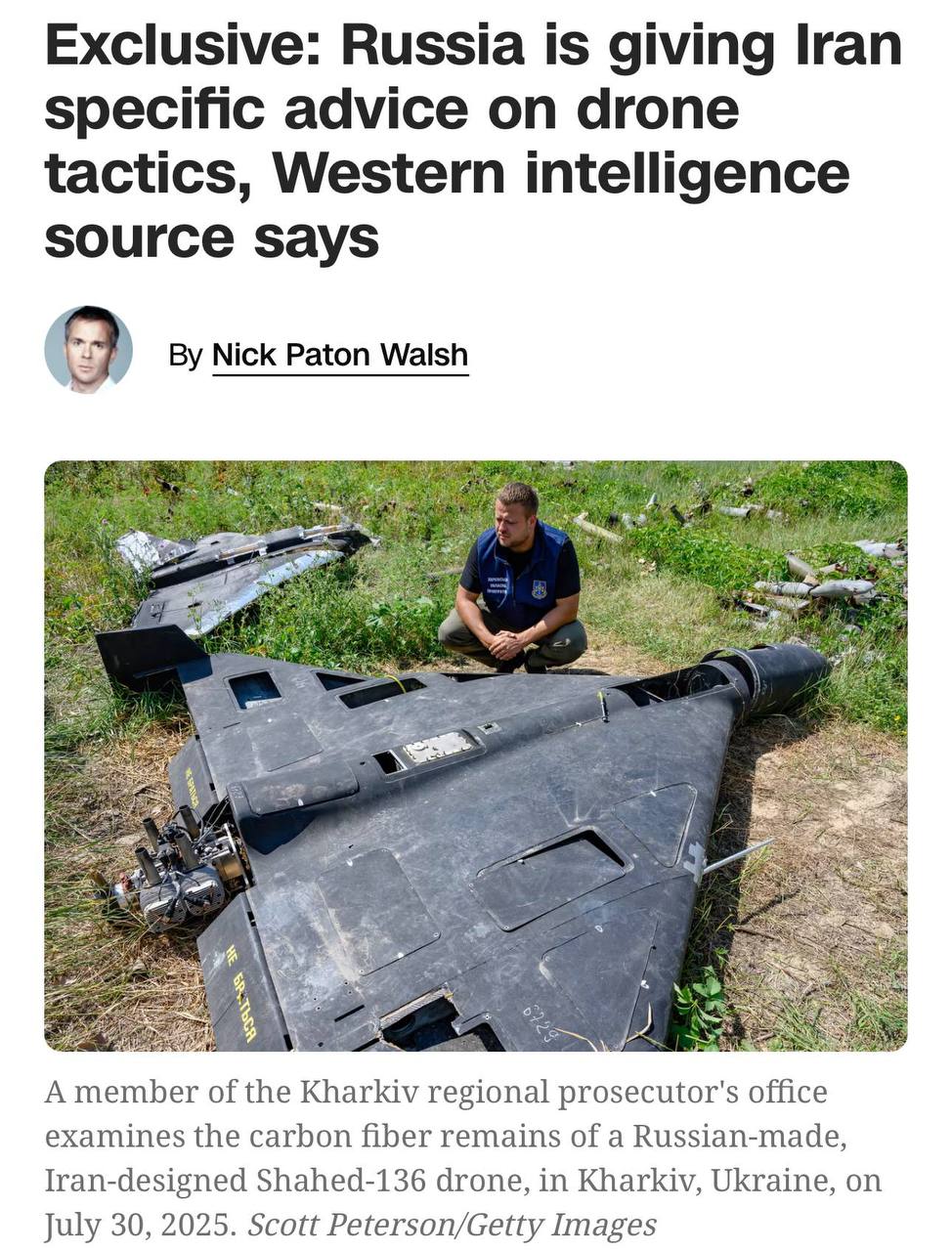 Сотрудник западной разведки сообщил CNN, что Россия теперь предоставляет Ирану более детальную помощь в области беспилотной войны, делясь тактиками, разработанными во время войны на Украине, чтобы помочь атаковать объекты США и стран Персидского залива на Ближнем Востоке.