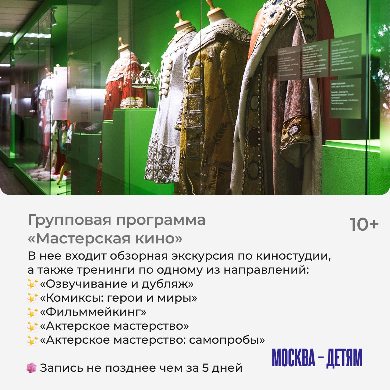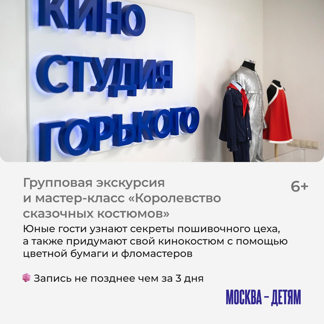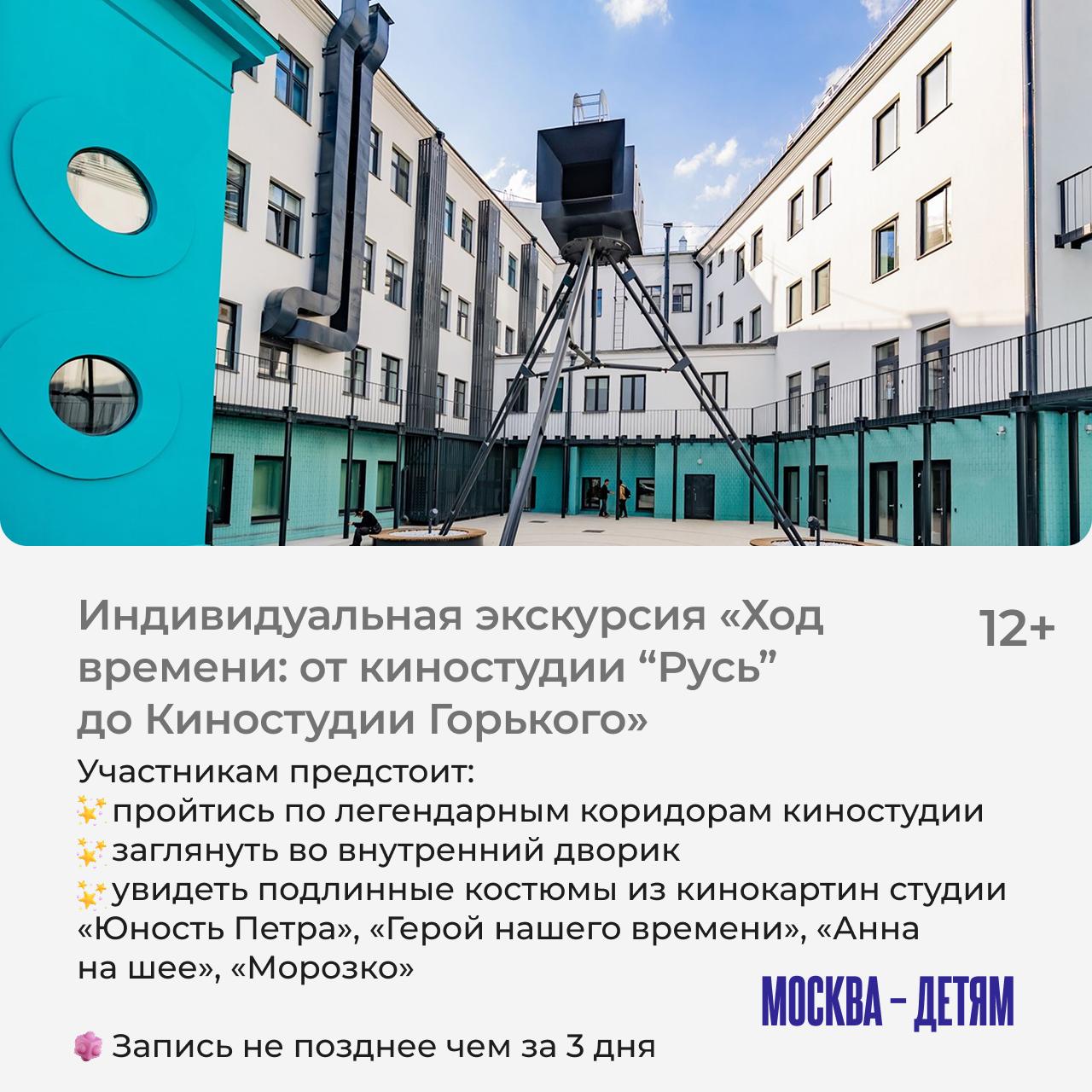 На мероприятия нужна предварительная запись по телефону: +7 499 181-03-59 или электронной почте: excursions@gorky-film.ru.