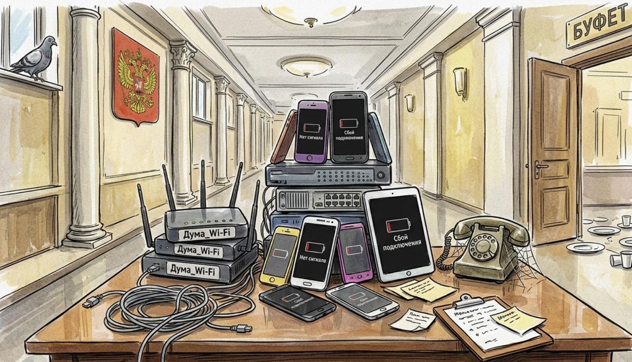 В стенах Государственной думы второй день фиксируют масштабные перебои со связью, которые парализовали работу внутренних сетей. Депутат Михаил Делягин подтвердил, что и общедоступный Wi-Fi, и а также мессенджер Max полностью перестали отвечать на запросы пользователей.