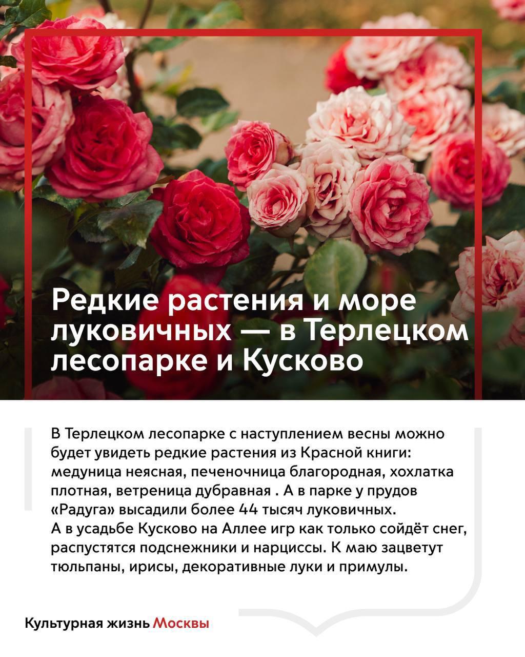 А в Терлецком лесопарке и «Кусково» можно будет увидеть редкие краснокнижные цветы.
