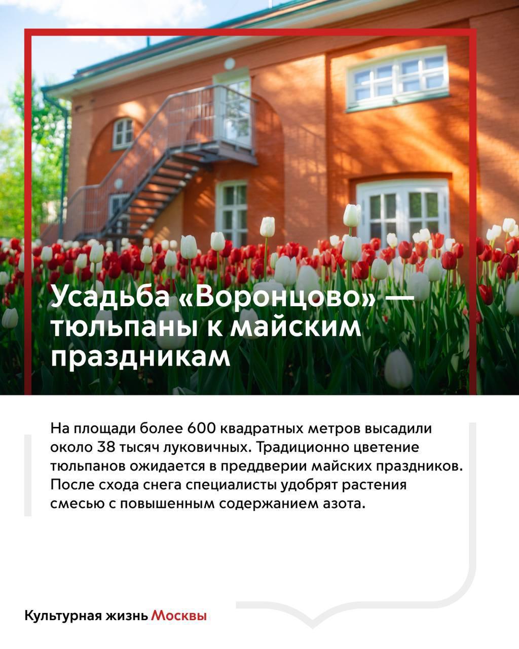 Например, в «Коломенском» уже появилось более 300 тысяч растений: тюльпаны, сирень, спирея и другие.