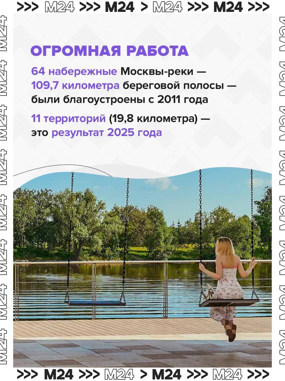 За полтора десятилетия проделана огромная работа. С 2011 года благоустроены 64 набережные Москвы-реки, 11 из которых — результат прошлого года.