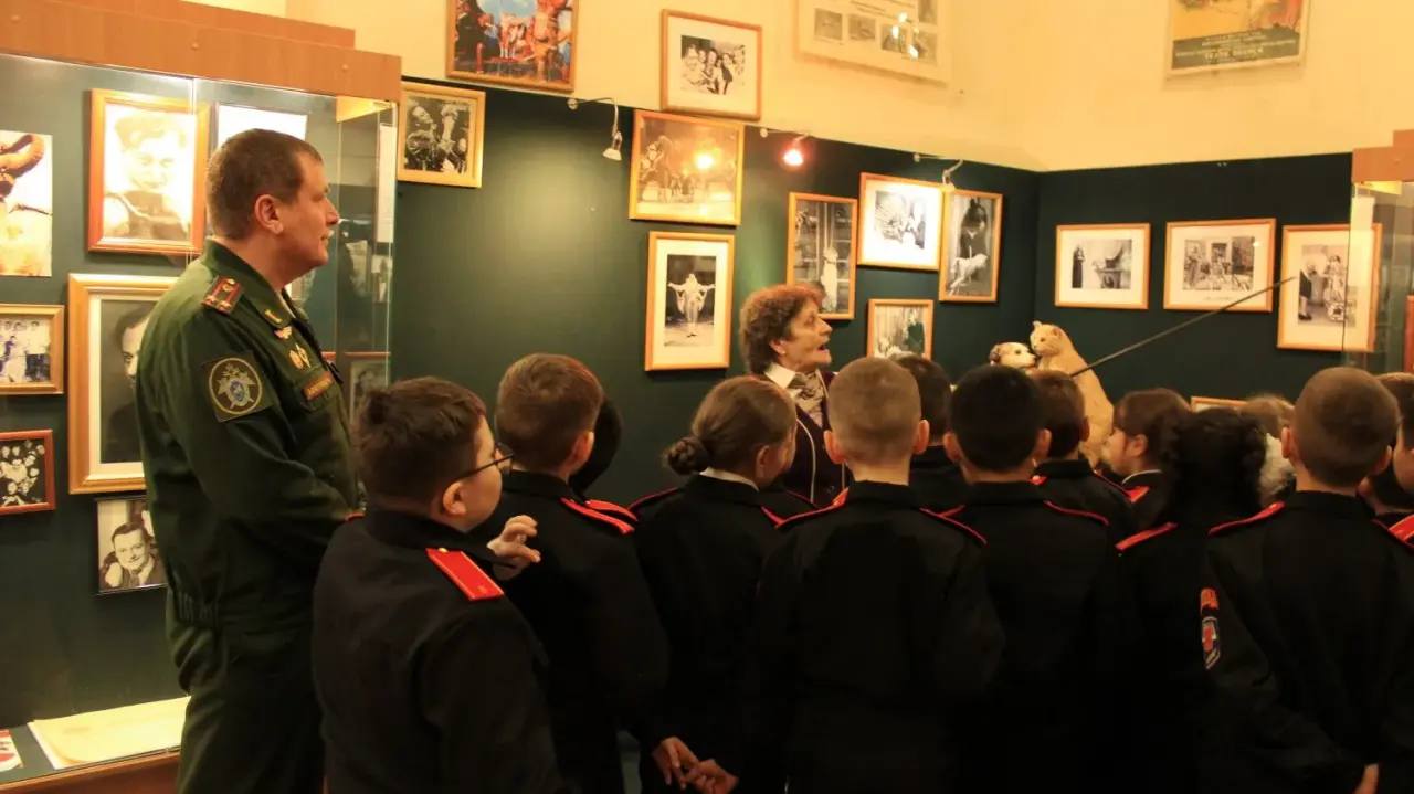 С этой целью офицеры организовали для кадетов посещение знаменитого московского детского театра зверей имени Владимира Дурова. Во время экскурсии дети познакомились с богатой историей, редкими экспонатами связанными с жизнью и деятельностью семьи Дуровых. Узнали о принципах взаимодействия человека и животного, а также о важности любви и уважения к братьям нашим меньшим.