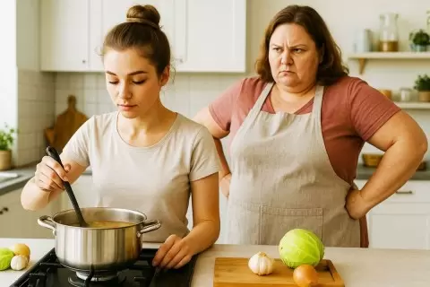 «Ты женился на мне или на своей матери?» — с сарказмом спрашивала она, мешая суп. Вадим растерянно прятал взгляд, ведь понимал, что с каждым упрёком дело движется в опасно катастрофическом направлении.