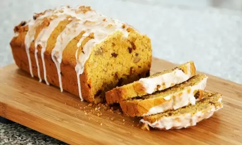 - После того как кекс полностью остынет, равномерно полейте его глазурью. Для украшения можно использовать немного тертой моркови или дополнительных орехов.