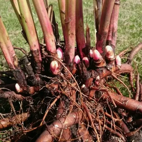 Корни способны эффективно размножаться, их легко делить на фрагменты для получения новых растений. Кроме того, корневища активно формируют новые почки и стебли, что позволяет кусту развиваться и расти в течение нескольких лет.