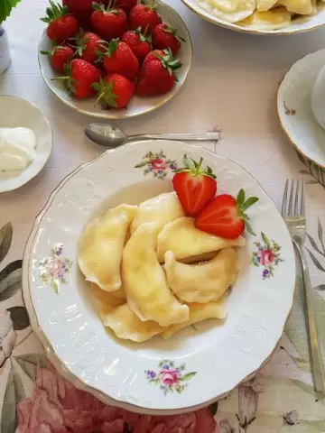 Перед подачей на стол рекомендуется украсить вареники сметаной и свежей клубникой, создав не только красивое, но и вкусное оформление. Не забудьте спеть любимую песню, ведь в компании угощений всегда лучше! Эти вареники станут отличным воспоминанием о теплых семейных вечерах и праздник в каждой порции.
