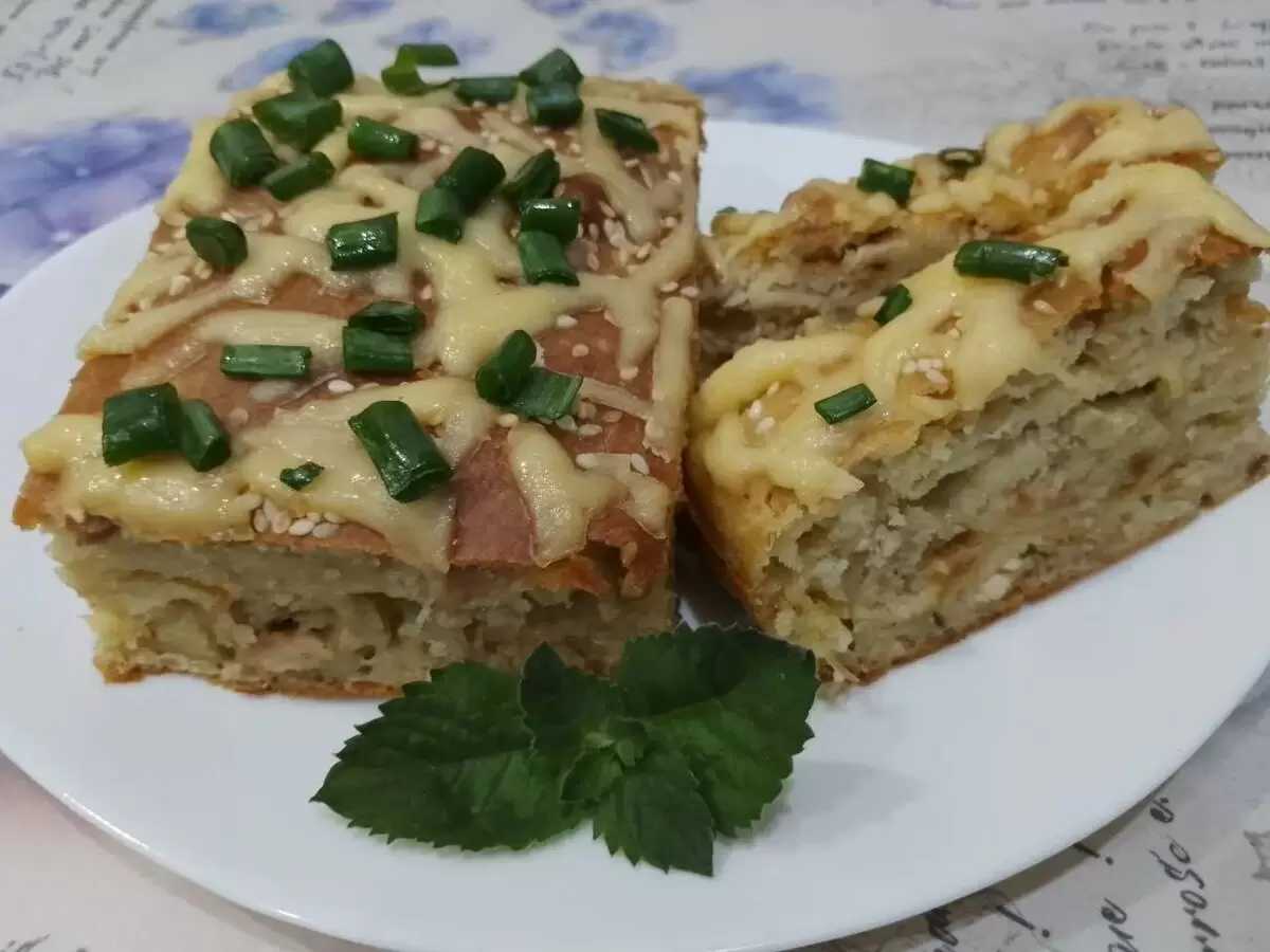 По желанию, его можно разрезать на кусочки и посыпать мелко нарезанным зеленым луком.