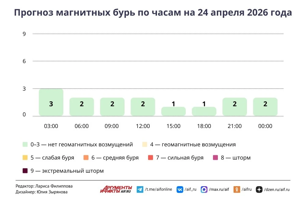 Геомагнитный фон ожидается спокойный, вероятность магнитных бурь составляет 7%.