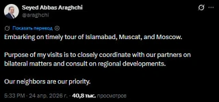 Глава иранского МИД Аббас Арагчи о своих визитах в Исламабад, Маскат и Москву: