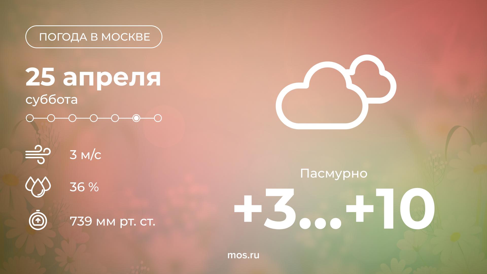 Доброе утро! Сегодня в Москве будет пасмурно. Столбики термометров покажут от +3 до +10 °С.