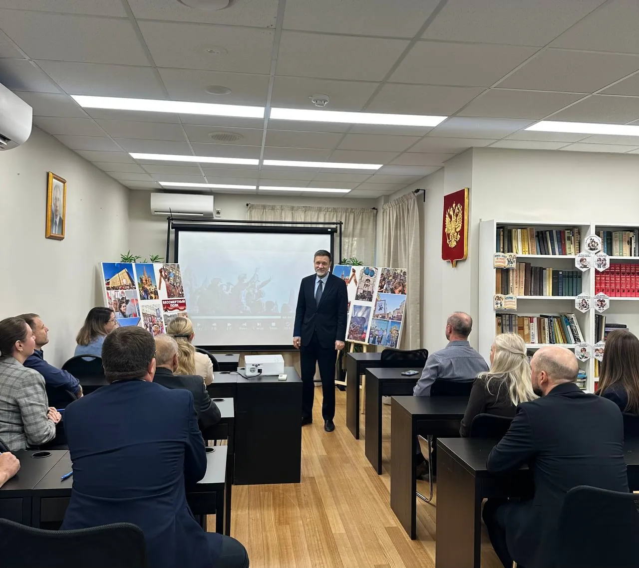 Вниманию присутствующих была представлена авторская фотовыставка Посла «Бессмертный полк: живая память». Фотографии были сделаны М.И.Петраковым в 2019 г. в Москве в ходе традиционного шествия.
