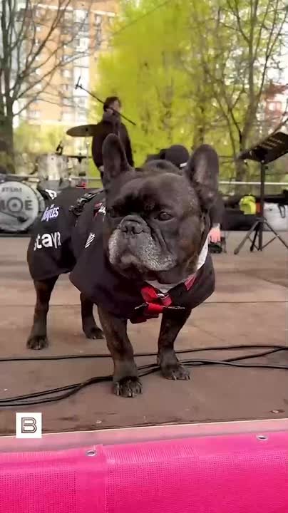 Парад французских бульдогов прошел в усадьбе Воронцово в Москве, несмотря на дождь. Десятки собачек, разодетых в изысканные наряды, прошествовали по красной дорожке на главной сцене.