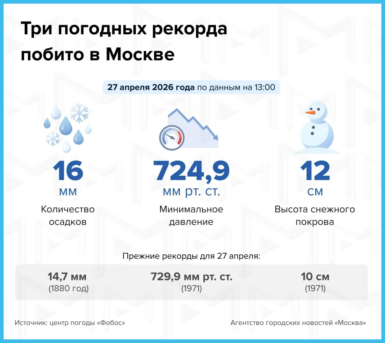 Сразу 3 погодных рекорда установлено в Москве 27 апреля — агентство "Москва"