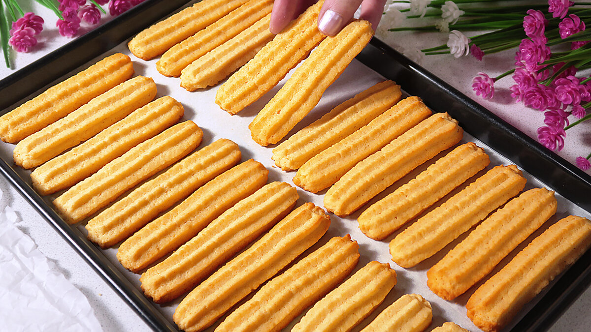 Когда тесто готово, его можно переложить в кондитерский мешок. Если такого нет, подойдет и обычный пакет — достаточно отрезать уголок. Далее надо отсаживать тесто на противень, придавая ему форму полосок и оставляя расстояние между ними.