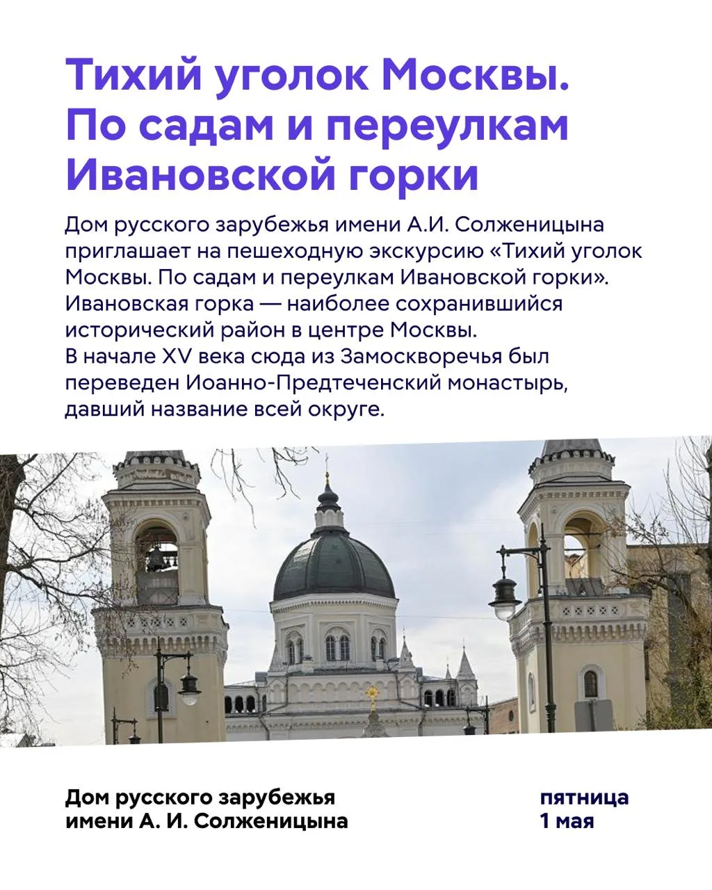 Посетить концерт оркестра La Voce Strumentale, стать участником пешей экскурсии «Тихий уголок Москвы» или узнать, как смотреть отечественное кино?