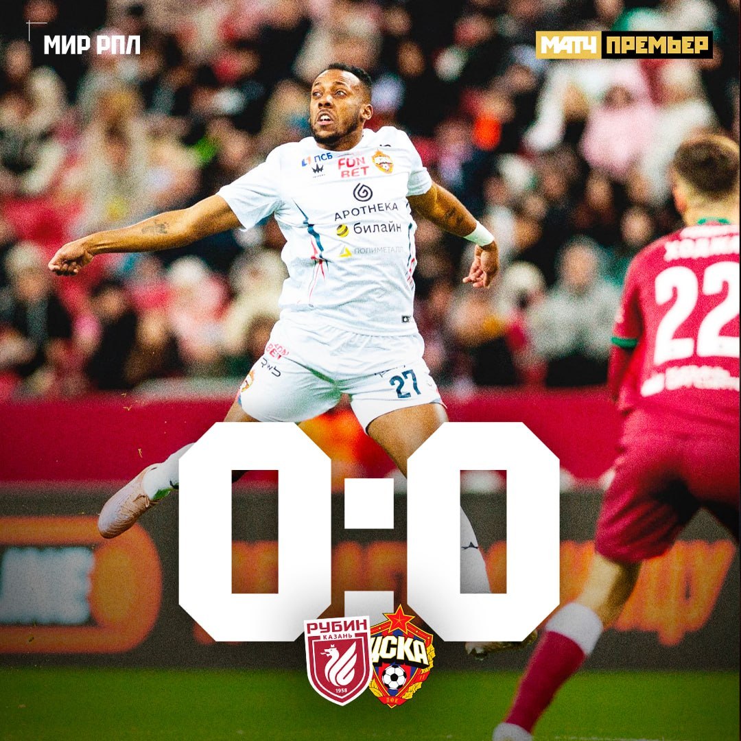 ЦСКА с 45 очками занимает пятое место в турнирной таблице РПЛ. «Рубин» (39) расположился на седьмой строчке.